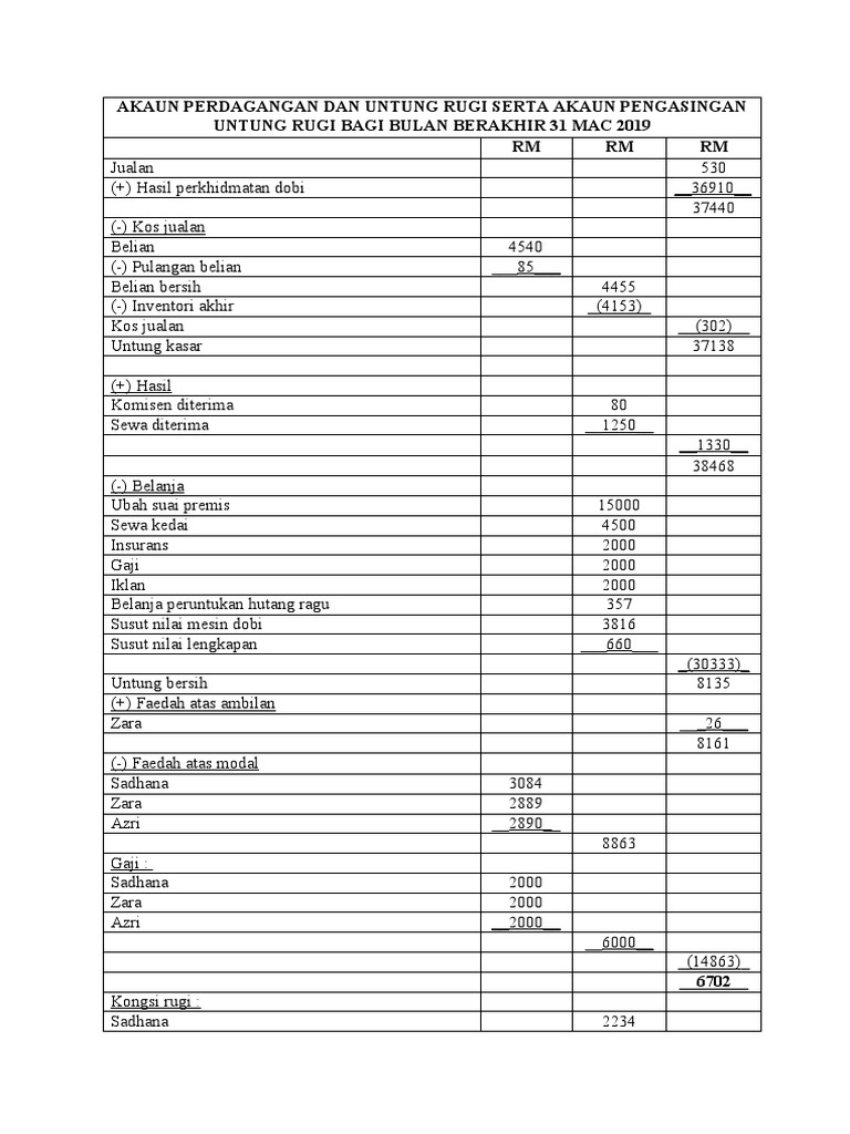 Akaun Perdagangan Dan Untung Rugi Serta Akaun Pengasingan Untung Rugi Bagi Bulan Berakhir 31 Mac 2019 Pdf